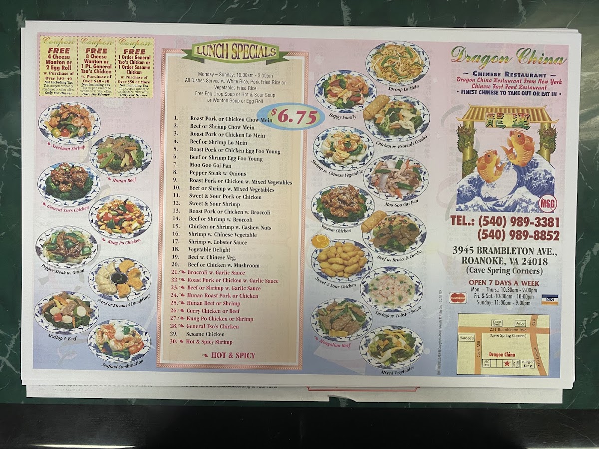 Dragon China - Roanoke Menu